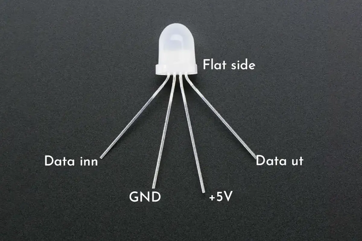 WS2812 LED er en type digitalt adresserbar LED-lys. De er også kjent som NeoPixels.